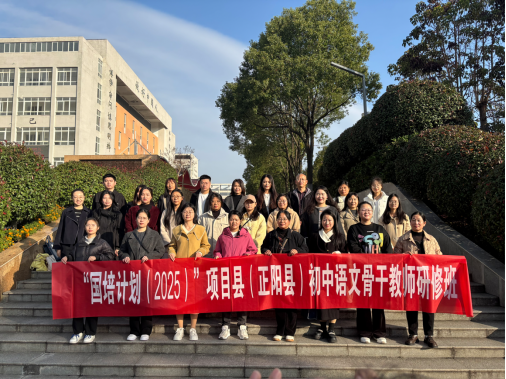 11月11日,“国培计划(2025)”项目县——正阳县初中语文骨干教师研修班的全体学员,在班主任郭子悦老师的带领下,赴羊山中学与郝堂村开展为期一天的实践观摩活动。本次活动聚焦语文教学与乡村教育振兴,以实地体验促专业成长,以文化浸润强教育使命。